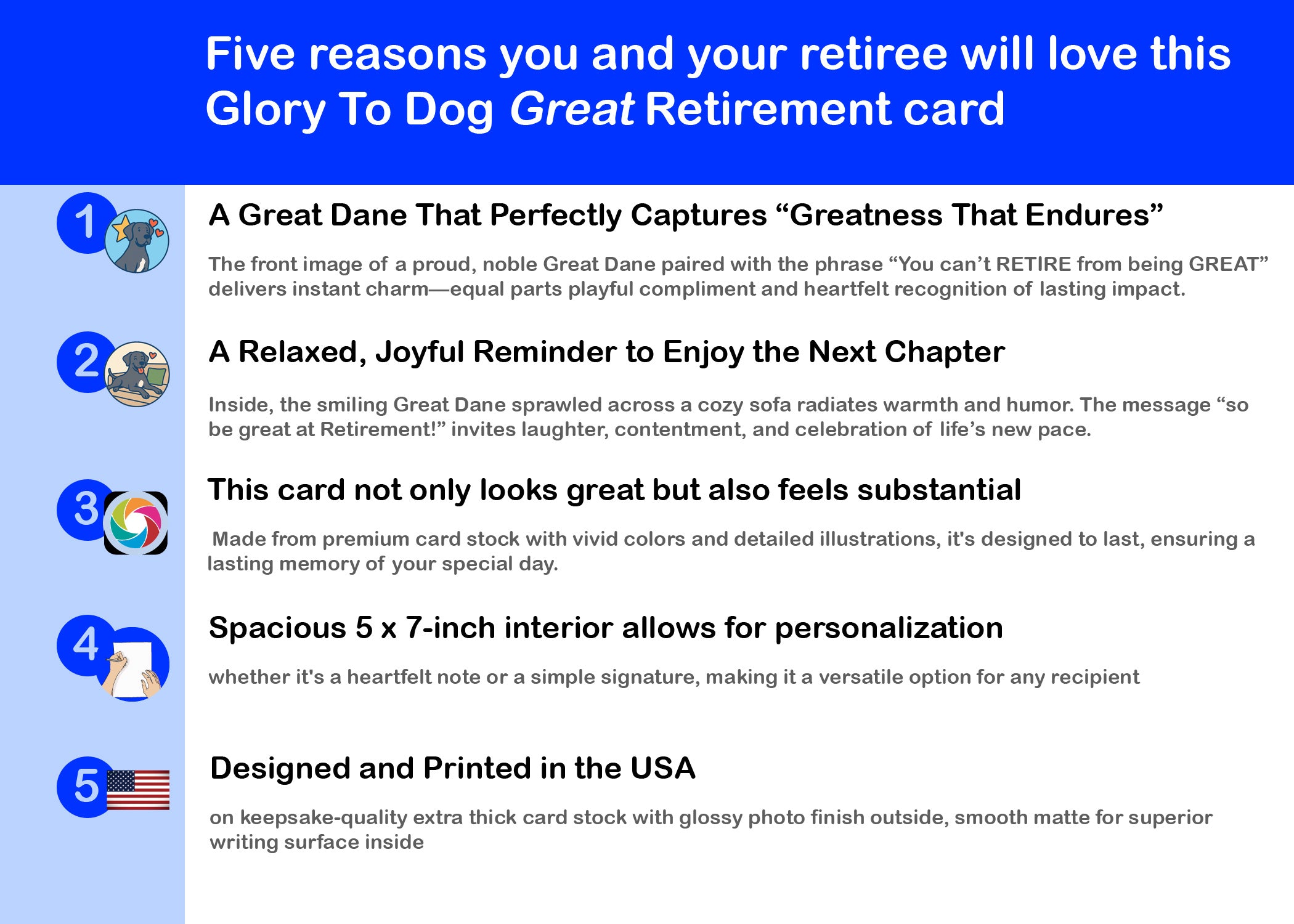 Retirement is the moment to stretch out, breathe deep, and smile wide—just like the confident Great Dane featured on this heartwarming card. With the cheerful message, “You can’t RETIRE from being GREAT,” the cover celebrates that while jobs end, greatness never does. Inside, the relaxed, smiling dog reminds the new retiree to embrace their next chapter with the same grace and enthusiasm they brought to every challenge. The playful line “so be great at Retirement!” and a bold “CONGRATULATIONS” make this the perfect mix of humor, admiration, and sincerity. It’s ideal for coworkers, friends, or family members who’ve made a lasting impact and now get to enjoy well-deserved rest. Whether they plan to travel, nap, or chase new dreams, this card honors their achievements and encourages them to savor every moment ahead—with tail-wagging pride.