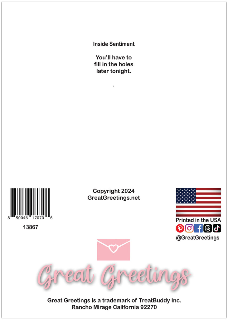Great Greetings H_ppy B_rthd_y You'll Have to Fill in the Holes Later Tonight Birthday Card