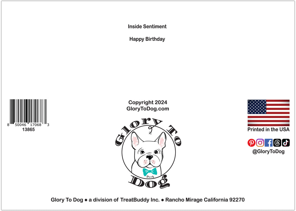 • Elevate the birthday festivities with our charming Barkday Blast Birthday Card! This delightful card features a cute black and white terrier lounging in a colorful serpentine streamer wonderland. The exterior sets the mood with a spirited message — "It's your barkday! Raise the woof and get your wag on!" — encouraging the recipient to let loose and enjoy their special day.