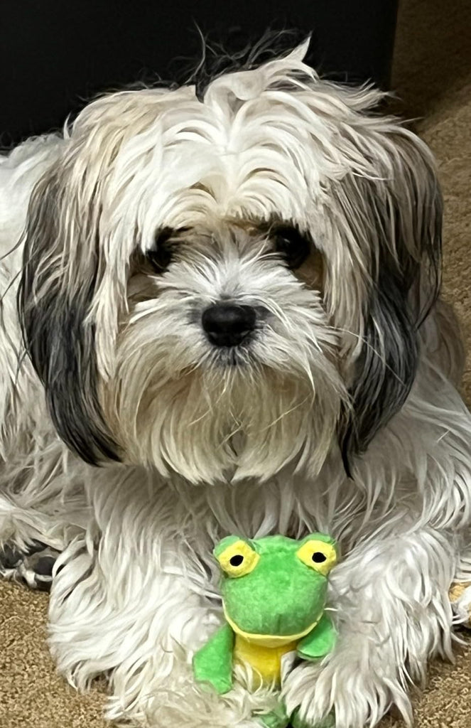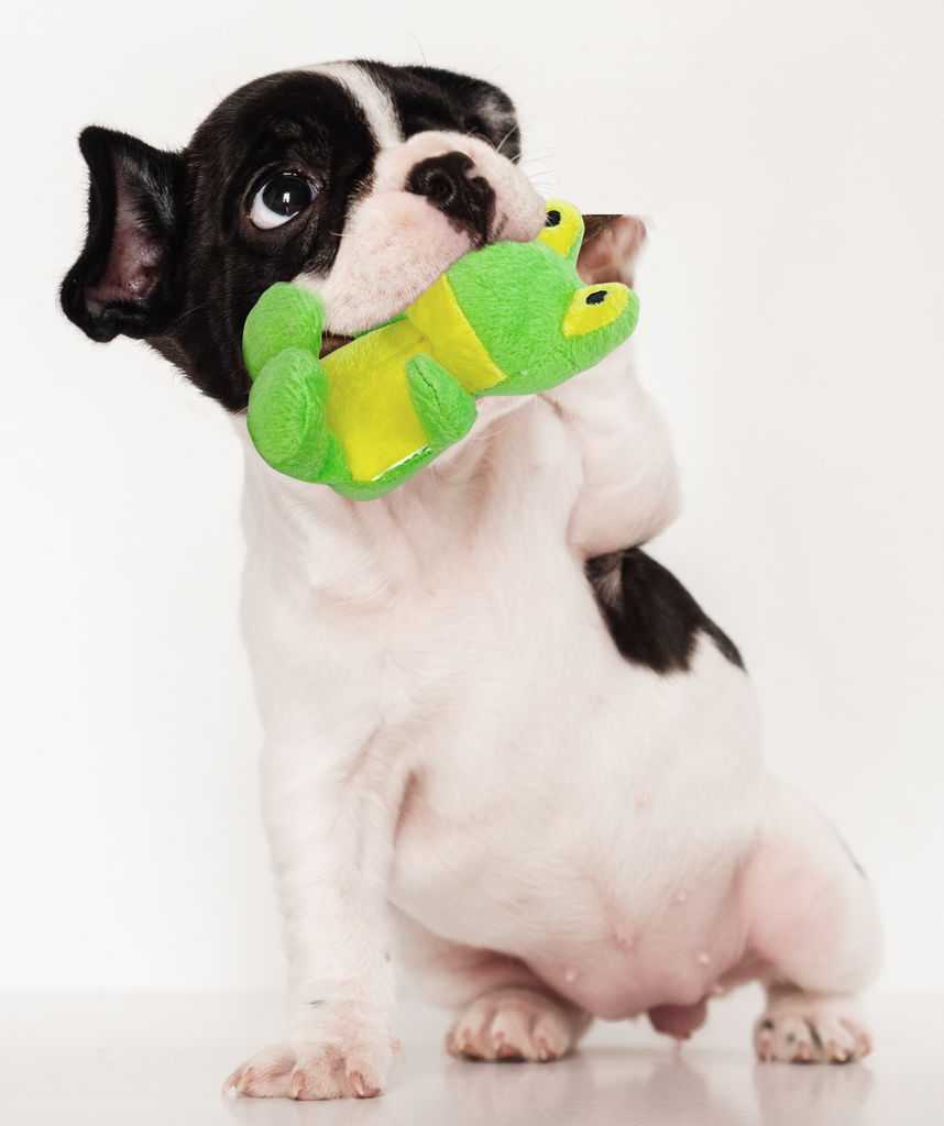 Our new TinyToyTM series of dog toys is designed for smaller dogs under 12 lbs, and is perfectly sized for the petite play of little princes and princesses. The cute little Frog is brightly colored and measures 4.5 inches by 3.5 inches.