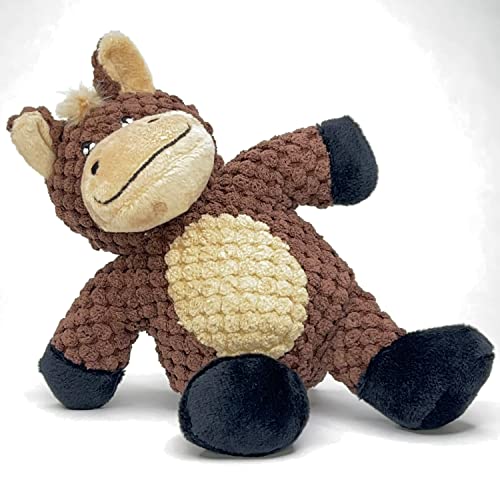 Glory To Dog's Barnyard series reimagines the horse as a friendly, tough but cuddly toy for your small dog. With integrated construction and reinforced seams, these little toys take a beating and keep on squeaking. The woven pineapple fabric texture is easy on little mouths with plenty of appendages to grab hold and shake. And while no dog toy is indestructible, these toys were made with ferocious and rambunctious play in mind, so no sharp pieces, no plastic parts to chew off, and 100% color-fast and safe materials that retain their shape. Cleanup is easy, too: hand wash and air dry. There’s a squeaker in the middle for maximum fun, and crinkle material in the ears for your pupper to gnaw on. Polyester and polyester fiber fill, machine or hand wash and air dry.