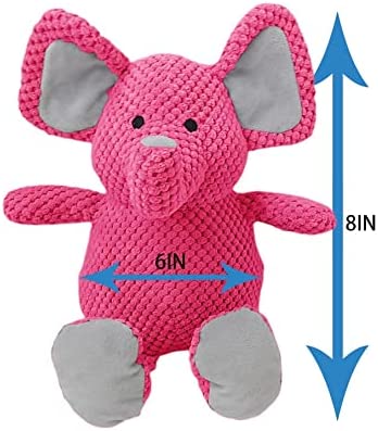 Eunice the Elephant keep pups big a small entertained and engaged with squeakers, crinkle, a roly-poly shape and bright pink waffle-weave fabric for fun, safe play. Eunice measures 6 inches wide and 8 inches tall (seated), perfect for medium to large dogs, lightweight and soft to touch but strong enough to withstand heavy chewers and fetch players.
