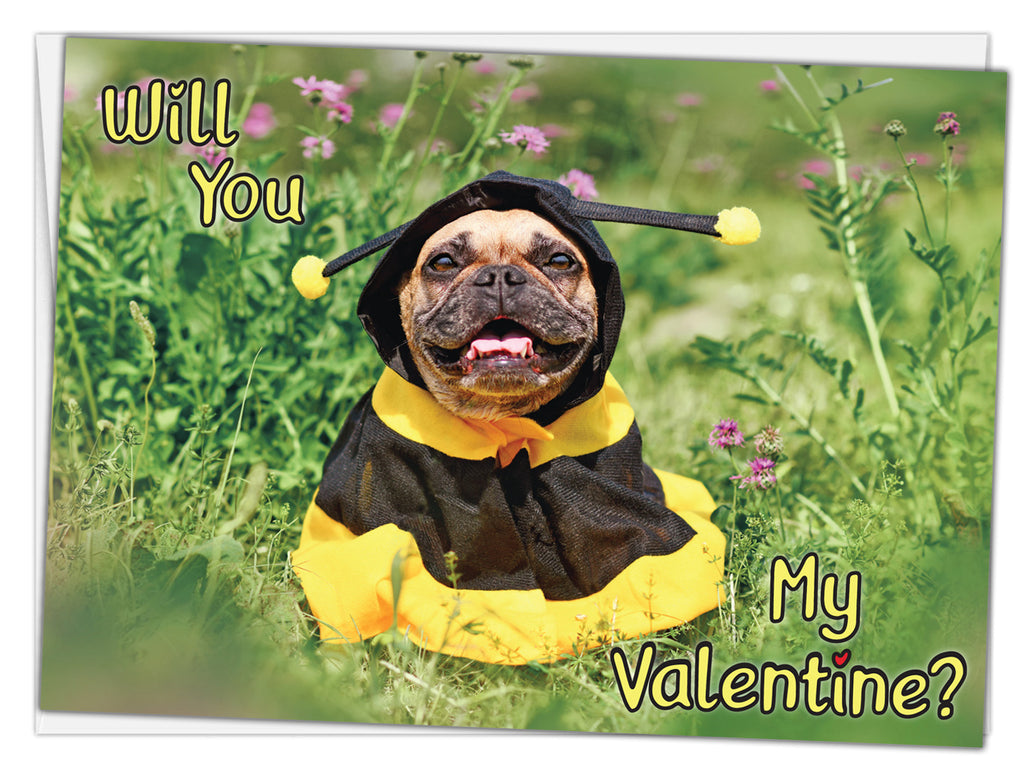 Will You (Bee) My Valentine Greeting Card (Landscape/French Bulldog in bee costume)
