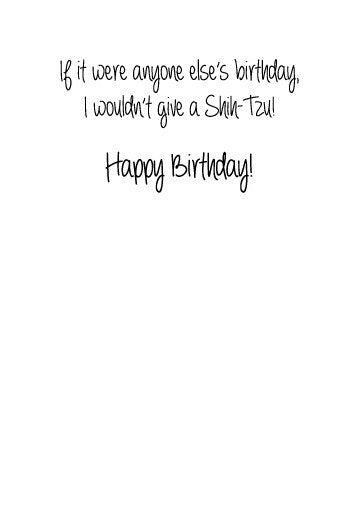 Message: You must be pretty special / If it were anyone else's birthday, I wouldn't give a Shih-Tzu! Happy Birthday!